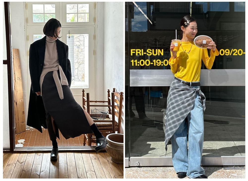 拥有系结设计的半裙则可以塑造出慵懒又酷感的风格造型,走动时呈现出的线条感性感又迷人,也很容易表现出裙子的质感。