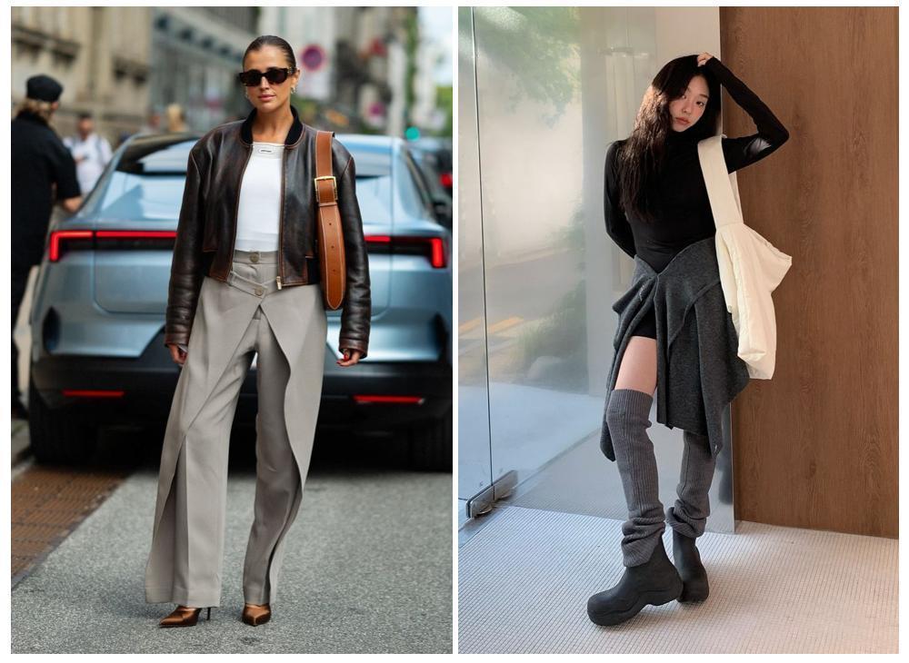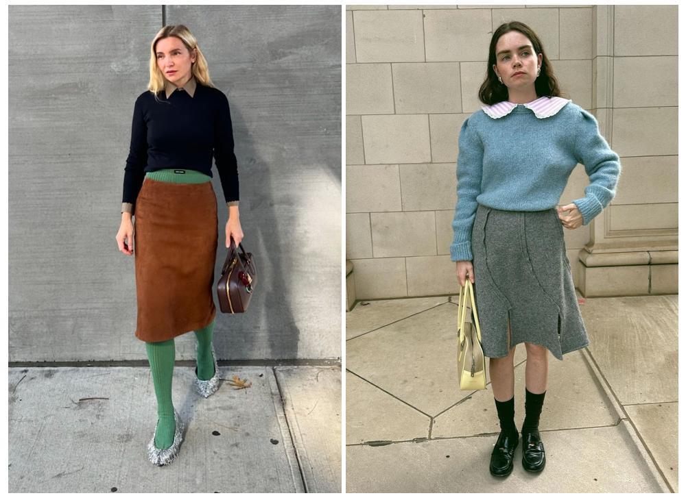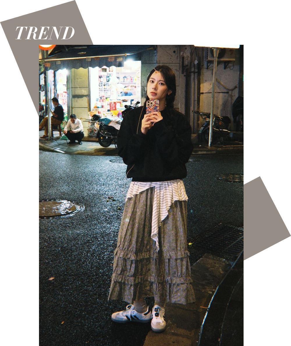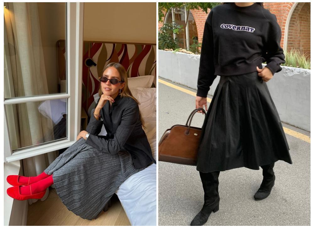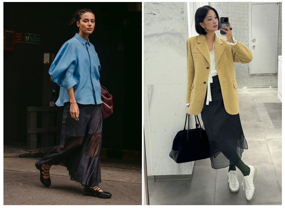 随着时尚圈开始越来越注重穿着舒服感的热潮,裤装与裙装的搭配也逐渐流行起来,它的风格并不局限于裙子的板型,也能很好地修饰腹部和胯部的线条。
