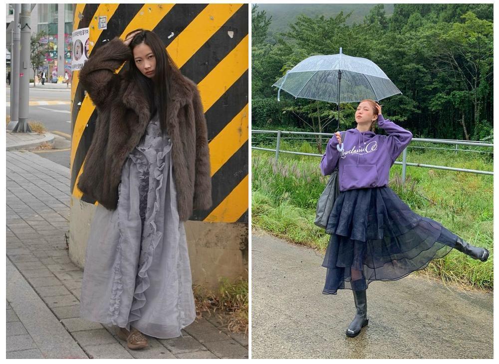 捧纱裙蓬松的裙摆自带着一种古灵精怪的复古感,如今它不再只是正式场景的公主裙,而是可以与卫衣、摇粒绒外套和牛仔皮靴混搭的氛围感半裙。