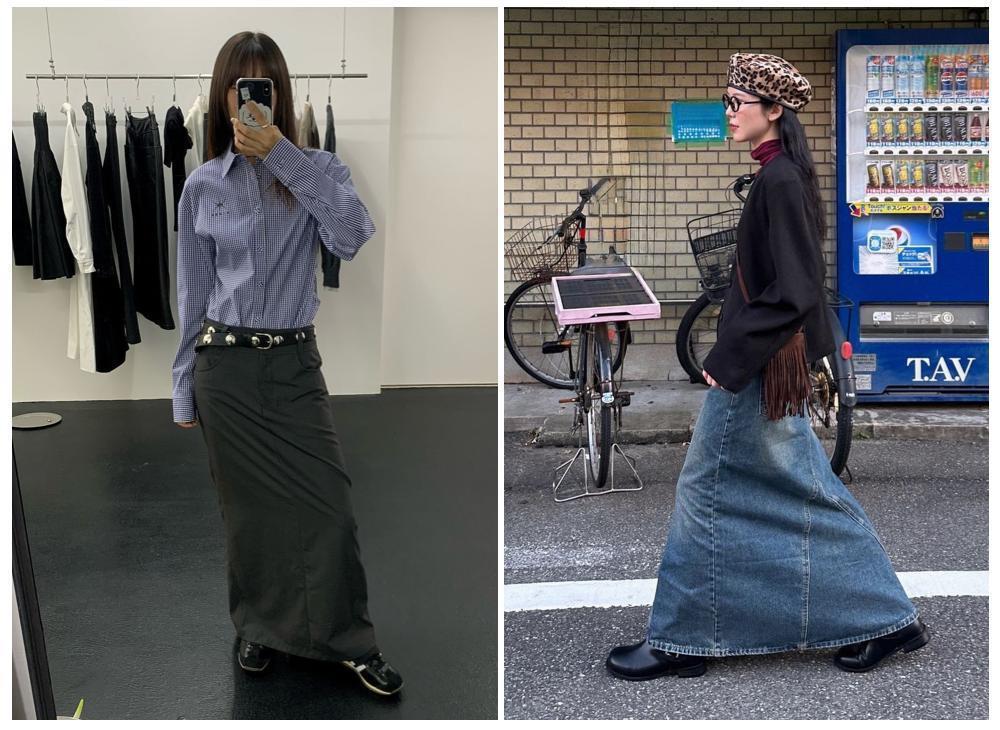 拖地裙H形的轮廓,利落直顺又很修身,上身后很显凹凸有致的身材曲线,不管是文艺女孩或职场辣妹,牛仔和工装面料的拖地裙都可以满足。